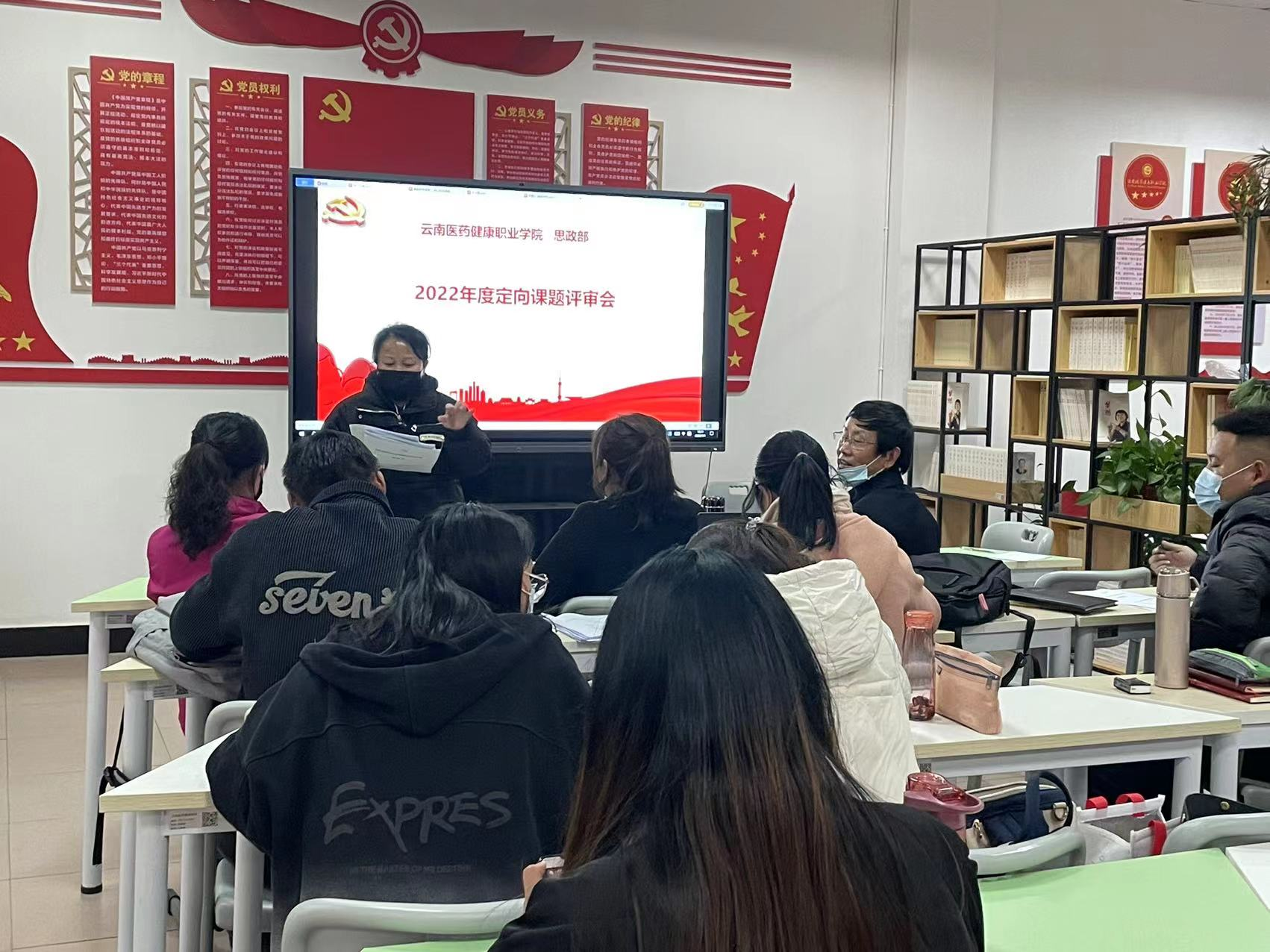 为更好地推进思政部的学术科研工作,以科研促教学,提高思政课教学质量;以科研促进教师业务素质提升,增强思政部的科研实力, 2022年4月1日下午,云南医药健康职业学院思政部在昆明校区召开学术委员会,对思政部2022年第二批科研项目(教改定向课题)进行立项评审。学术委员会主任杨焰婵博士主持此次评审会议。